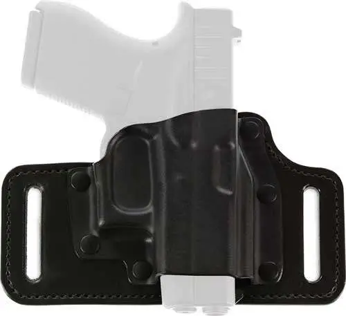 Galco's TacSlide combines steerhide and Kydex for a belt holster that is fast, concealable, and very economical. The TacSlide mates a Kydex holster pocket to a slotted steerhide backplate. An open top and near-neutral cant make the draw fast and simple. The wide spacing of the 1.75" belt slots pulls the handgun in tight to the body for excellent concealment. The TacSlides silhouetted, belt-slide design accommodates multiple barrel lengths on the same basic frame size while simultaneously minimizing overall bulk. The steerhide backplate is smooth where it rides against the wearers body, greatly increasing comfort.