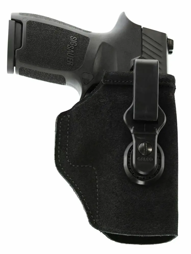 The Tuck-N-Go 2.0 is made of center cut steerhide, while the metal reinforced mouth allows a smooth and easy return to the holster. The ambidextrous Tuck-N-Go 2.0 is supplied with two types of interchangeable tuckable clips. The first is the UniClip, designed to go over the belt, but also works well without a belt. The second is the Ultimate Stealth clip with hook, which fits on the trouser waistband, under or behind a belt with just the clip showing, for concealment. The Tuck-N-Go 2.0's belt clips are adjustable for cant, making it suitable for the strongside, crossdraw or appendix carry positions. The UniClip fits belts up to 1.5", the Ultimate Stealth clip fits belts of unlimited width.