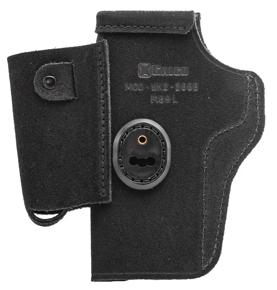 Part of Galco's Concealed Carry Lite line of holsters, the WalkAbout 2.0 offers all the benefits of the Tuck-n-Go 2.0 with the addition of an attached speedloader carrier. Its an exceptional combination of high performance, comfort and affordability. The open top allows for a very fast draw, while the reinforced mouth allows a smooth and easy return of the gun to the holster. The WalkAbout 2.0's belt clips are adjustable for cant, making it suitable for the strongside, crossdraw, or appendix carry positions. The ambidextrous WalkAbout 2.0 is supplied with two types of interchangeable tuckable clips. The first is the UniClip, designed to go over the belt, but which also works well without a belt. The second is the Ultimate Stealth clip with hook, which fits on the trouser waistband, under or behind a belt with just the clip showing, for the ultimate in stealthy concealment.