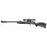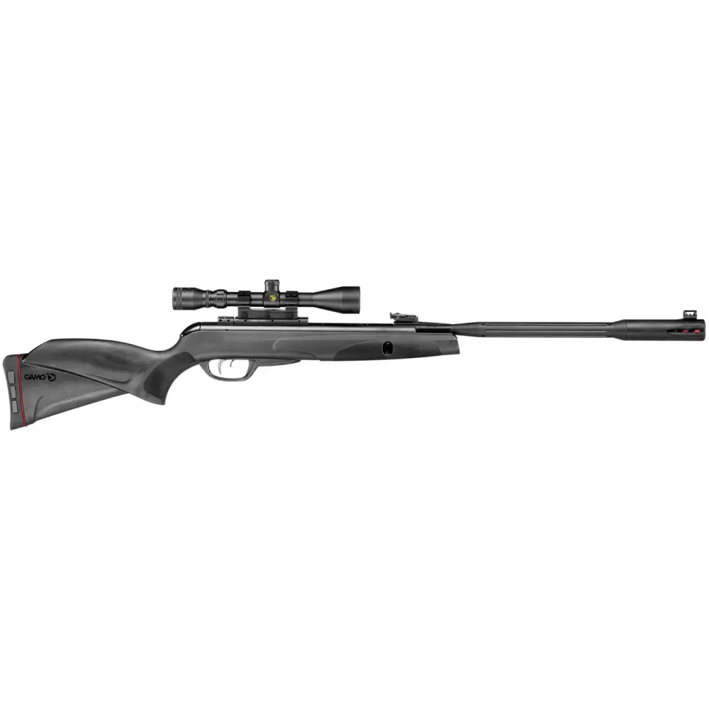 Gamo's powerful Whisper Fusion Mach 1 air rifle features Whisper technology. It is an integrated noise and muzzle blast reducer overmolded on the barrel, making this air rifle quiet. It also features the IGT Mach 1, which replaces the standard spring powerplant with an Inert Gas Cylinder. The IGT Mach 1's monster 33mm cylinder delivers more velocity and terminal penetration, not to mention smooth and consistent cocking efforts with constant power delivered to any pellet you fire. .