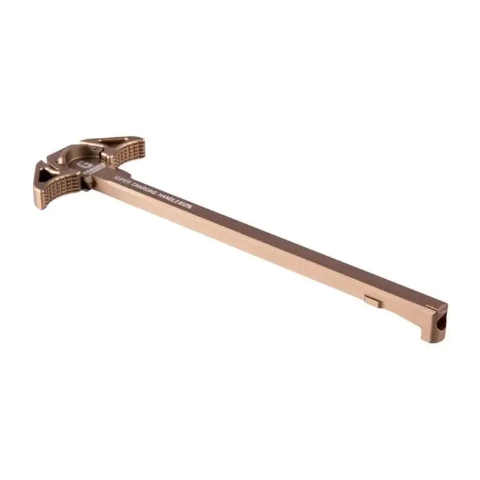The Super Charging Handle (SCH) is machined from a solid block of aircraft grade 7075-T6 aluminum with a hardcoat anodized finish. Its ambidextrous design allows for seamless operation from either side of the weapon.