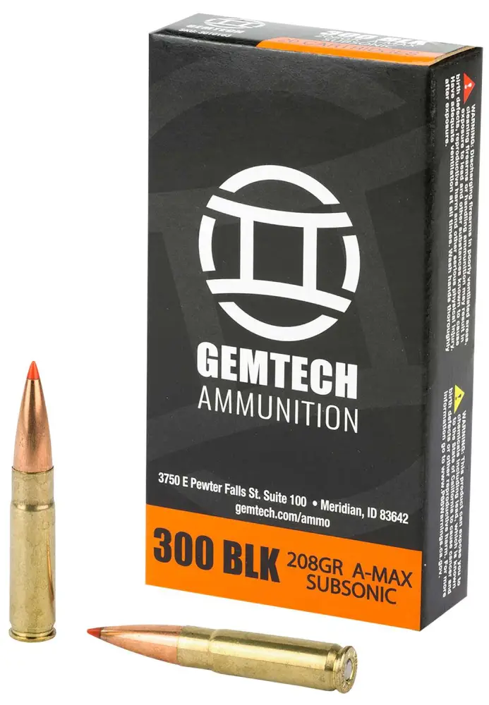 GEMTECH's subsonic 300 Blackout ammunition was created to give the quiet shooter an affordable and dependable training round and just like the .22lr, outperforms other training rounds with consistent dependability and accuracy. It features a 208 grain polymer tipped projectile that provides excellent stopping power making it an excellent deer or hog hunting round and perfect for home defense use.