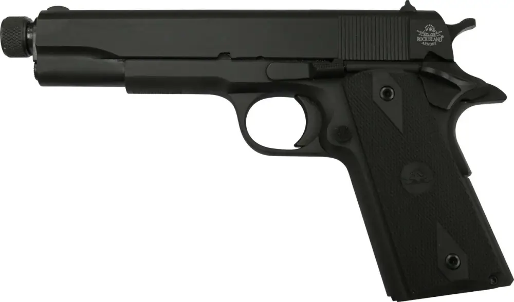 The M1911 GI standard is a great representation of the original US GI combat issue 1911 chambered in 45 ACP and is built in Rock Island’s top quality production and engineering standards. Fixed low profile sights and traditional smooth slim design are perfect for quick pull holster use. A durable parkerized finish provides it a tough and smooth non reflective surface. The 5” threaded supressor ready barrel. True to all Rock Island 1911’s, the GI Standard comes with a crisp factory 4 to 6 pound trigger which makes this fine pistol a great experience right out of the box..