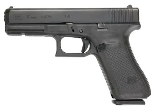 This Glock Gen5 model has fixed sights and a 17-round capacity.