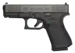 The G19 Gen5 features a no finger grooved, multiple backstrapped, rough textured frame with hundreds of miniature spikes which results in remarkable traction for extreme environments and gloved operators. The frame also features a smooth trigger, reversible mag release, and ambidextrous slide stop. The magazine comes with a floor plate which is extended at the front for faster magazine change, and a orange follower, while the flared mag-well makes it easier to funnel the magazine into the mag-well. Glock's nDLC finish provides a tougher, more durable protection against corrosion and scratching. The Glock Marksman barrel features a barrel rifling which delivers improved accuracy. This Glock Gen5 MOS FS model has front slide serrations, fixed sights, a modular optic system, and a 10-round capacity.