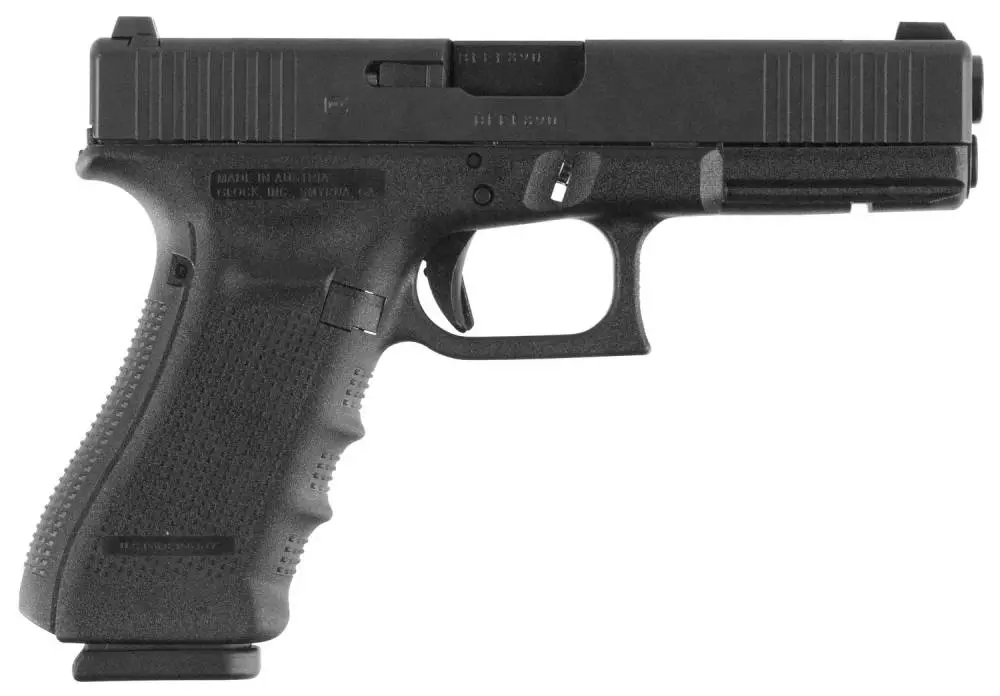 The Glock 17 Gen4 introduces revolutionary design changes to the world's most popular pistol. The modular backstrap design lets the user to adapt the grip to hand size, and the frame surface exhibits the scientifically-designed Gen4 rough textured technology. This model features a dual-recoil spring assembly that substantially increases the life of the system, and the enlarged reversible magazine catch easily accommodates left- or right-handed operators. The G17 Gen4 retains the Glock accessory rail for accessory attachment. This G17 Gen4 model has a 10-round capacity. It features front slide serrations, Glock night sights, and extended controls (magazine catch).