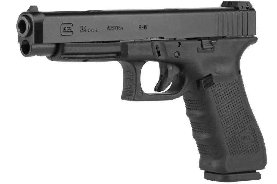 The Glock 34 Gen4, in 9x19, introduces revolutionary design changes to the "Tactical/Practical" Glock designed to be the same overall length as the Government Model 1911 pistols. Internally, the Glock dual recoil spring assembly substantially increases the life of the system. A reversible enlarged magazine catch, changeable in seconds, accommodates left or right-handed operators. The surface of the frame employs the scientifically designed, real-world-tested, Gen4 rough textured technology. The modular backstrap design lets you instantly customize its grip to adapt to an individual shooter's hand size.