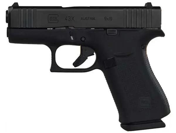 Designed for comfort, The G43X combines a compact-size grip length, a built-in beaver tail and a subcompact-slim slide for a comfortably balanced, versatile grip thats ideal for a variety of users. The frame incorporates elements of the Gen5 and Slimline series such the short trigger distance, a frame with a built-in beavertail, a reversible magazine catch and the incredibly accurate, match-grade GLOCK Marksman Barrel (GMB) and precision-milled front serrations.