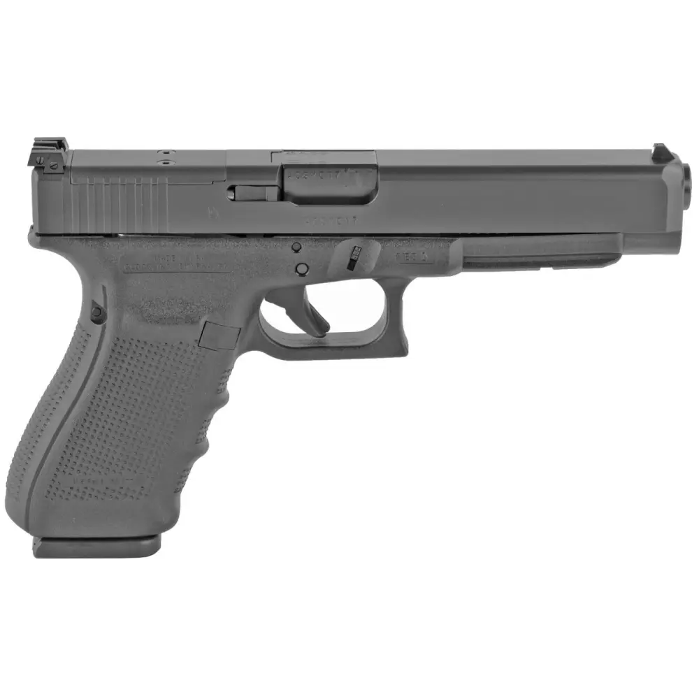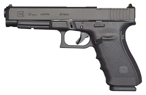 The Glock 41 Gen 4 is a practical/tactical pistol designed with the superior engineering to maximize sight radius while improving weight distribution and balance. Its longer barrel and slide help to reduce muzzle flip and felt recoil while the longer sight radius provides better accuracy for competition or duty use. The Glock Modular Optic System (MOS) simplifies the mounting of popular optics without costly custom-machining of the pistol's slide. MOS has four plate options to comply with the specifications of some of the most trusted optic manufacturers in the industry, and a cover plate when no optic is mounted. MOS gives you the option of adding tall iron sights allowing the optic and the iron sights to co-witness. This pistol does not include the modular sight, just the bracket to mount it on.