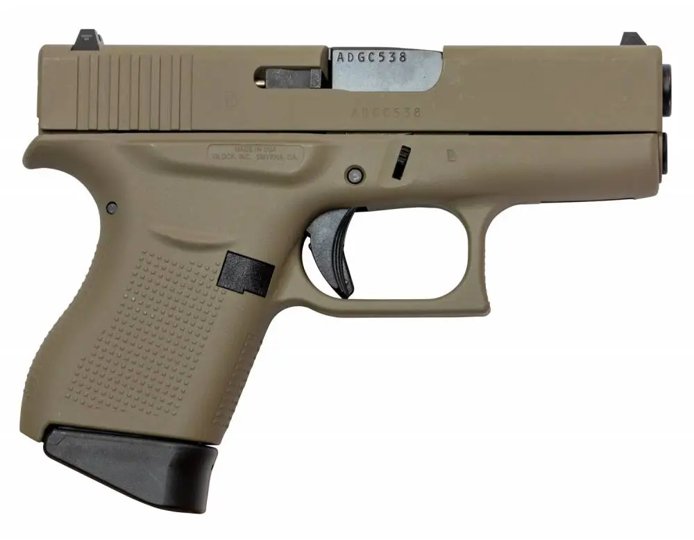 The already legendary G43 is a single stack, 9 mm Luger caliber pistol. It is ultra-concealable, accurate and a fantastic tool for all shooters regardless of ones hand size. The grip has a built-in beaver tail design which allows the shooter to acquire a high and tight grip. The aggressive texture of the grip surface allows for comfortable and reliable operation of the pistol. The large magazine catch makes quick work of removing the six round magazine.