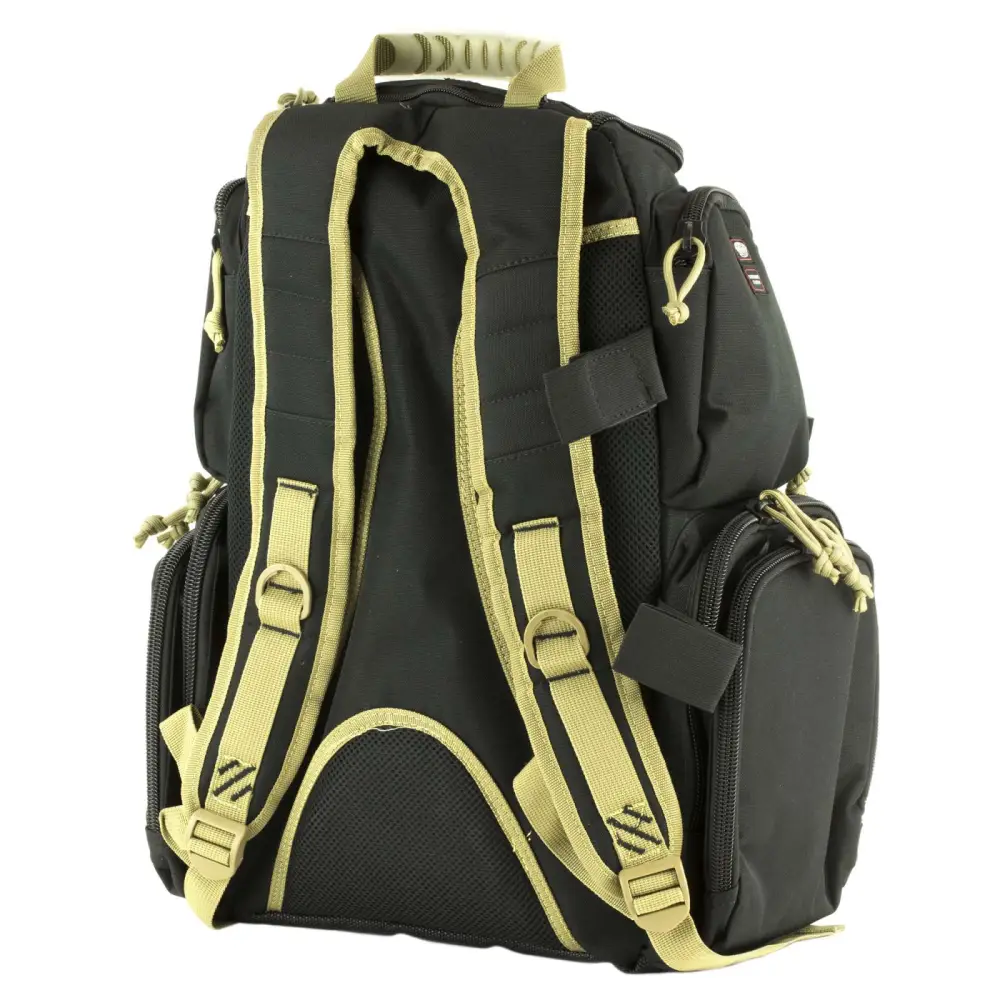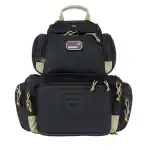 This Handgunner Backpack free standing backpack allows for hands free transportation to and from the range. Its design allows the avid handgun shooter a way to transport handguns, 12 extra magazines, ammo, shooting glasses, ear protection, targets, stapler, tape, binos, shooting mats, and cleaning supplies all in a compact backpack. The visual ID storage system separates pockets that store most frequently used items for added protection and easy retrieval. An additional unique feature is the inside storage cradle that is made of high density foam which slides in and out of the lower compartment. This foam cradle was designed to hold 4 medium to small size handguns in a vertical format. The vertical format allows for ease of use at the range and added protection from 360 degrees. Included is a waterproof pull out cover to help keep the contents dry in case of a sudden downpour.