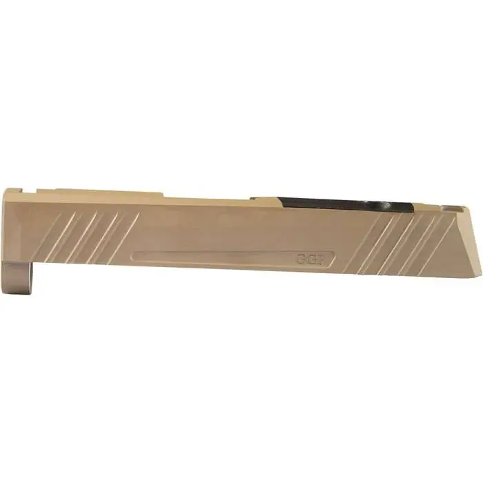 The GGP365 stripped slide is constructed of 17-4 stainless steel and comes cut compatible with the Shield RMS-C or SIG ROMEOZero micro red dot optics, with an attractive G10 coverplate for when a MRDS is not in use. This version 1 features aggressive serrations in front and rear.