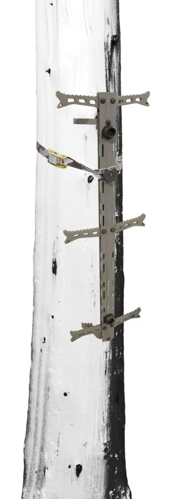Helium climbing sticks have a silent-use versa button to prevent noise when packing and installing. Superior step design provides for non-slip performance. Helium climbing sticks have a 300 lb. weight rating.