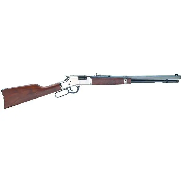 Henry Big Boy Silver model is an equally striking throwback to the days of nickel plating on prized guns to protect and enhance their visual appeal. Its frame is constructed of a solid aluminum-bronze alloy that's actually slightly tougher than the long-running hardened brass alloy in the popular brass-framed. Other features included buckhorn/bead sights, straight stock wrist, carbine-style buttplate, ten-round magazine capacity, tube magazine loading, transfer bar safety, and weighs 8.68 pounds. Chambered in 44 Remington Magnum.