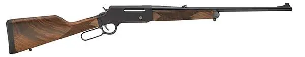 When you need distance and precision, Henry gives you a whole new hunt with the Long Ranger. Definitely not your Grandpa's Henry, the Long Ranger retains traditional lever action operation with exposed hammer and forged steel lever, but updates it with a geared action that drives a machined and chromed steel bolt with a 6-lug rotary head into a rear extension of the barrel for a strong and consistent lock-up from shot to shot to shot. Its American walnut stock has a straight grip with cut checking on the grip and forearm. The Long Ranger has a 20" round, free-floated steel barrel with a blued finish, and a drilled/tapped receiver made of lightweight alloy with a black hardcoat anodized finish. It includes swivel studs and a removable magazine. This model has a ramp front sight with .062" ivory bead and a fully adjustable, folding rear sight.