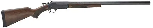 Sharing the same action as Henry's single-shot rifle, this break-top shotgun features the same rebounding external hammer and dual-direction pivoting locking lever setup that blocks hammer contact with the firing pin unless the trigger is pulled, and the same interlock system that prevents opening or closing the action with the hammer cocked. The steel frame version has an American Walnut pistol grip buttstock with a solid black rubber recoil pad, blued receiver, no manual safety and a round matte black barrel with a brass bead front sight.