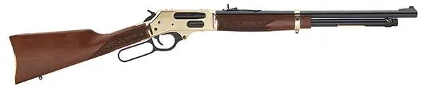 Henry's Side Gate Lever Action offers up the best of both worlds with a standard removable tube magazine for safe and easy unloading and a side loading gate to keep the magazine topped off. The hardened brass receiver is as reliable as it is handsome with the same yield and tensile strength as steel. The brass accents continue through the rifle with the buttplate and barrel band. Its American walnut furniture is set off by intricate, deep checkering that will ensure a firm purchase on the stocks. A semi-buckhorn rear and ivory bead front sight accompanies a 20" round blued steel barrel to deliver the accuracy. From whitetail hunting to days at the range, to standing as a favorite show-piece in the gun cabinet, the Side Gate Lever Action is a must-have for any lever action aficionado, and it solidifies Henry as the first name in lever action rifles.