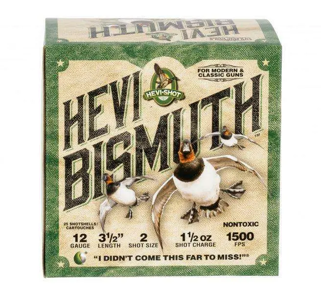 When you're waking up at zero-dark-thirty and heading out in the chilly morning fog of opening day, you want to give yourself every opportunity for success. You want a shell that delivers maximum force at a price that doesn't force you to take out a second mortgage. Hevi-Shot HEVI-Bismuth Waterfowl shells utilize bismuth, which is 22% denser than steel, to deliver more downrange lethality. And, its safe for older fixed choke and fine classic doubles shotguns.