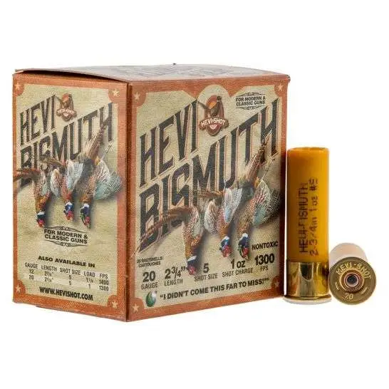 The HEVI-Bismuth Upland shells utilize bismuth, which is 22% denser than steel, to deliver more downrange lethality at an affordable price. And, it's safe for older fixed choke and fine classic doubles shotguns.