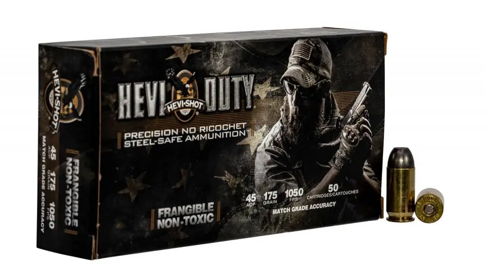 The first bullet from HEVI-Shot, HEVI-Duty brings you frangible, non-toxic bullets and loaded cartridges that deliver improved accuracy and no ricochet at a price comparable to traditional lead bullets. Competitive and recreational shooters can look forward to match-grade accuracy.