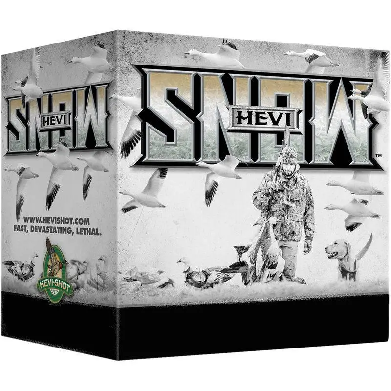 Designed to give you payloads of big pellets at higher speeds than other steel shotshells, HEVI-Snow delivers HEVI-Shot reliability in a big steel shell. Its the shotshell you want when the sound of a thousand wings overhead pulls you up out of your layout blind and you have your pick of birds. Higher speeds equal to 7% more energy. Hevi-Snow is non-toxic and safe for steel-rated shotgun barrels. It is made in the USA.