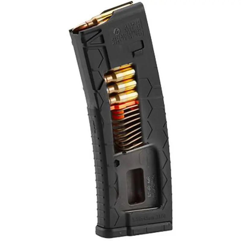 Hex 15rd magazine for use with calibers- .223/5.56x45mm, .300AAC Blackout, .458 SOCOM, .50 Beowulf and more. Used with rifles- AR-15s, SCAR 16, IWI Tavor, CZ Bren, Beretta ARX 100 and more. *Note- this 10rd magazine uses a standard size body, it is not a short magazine.