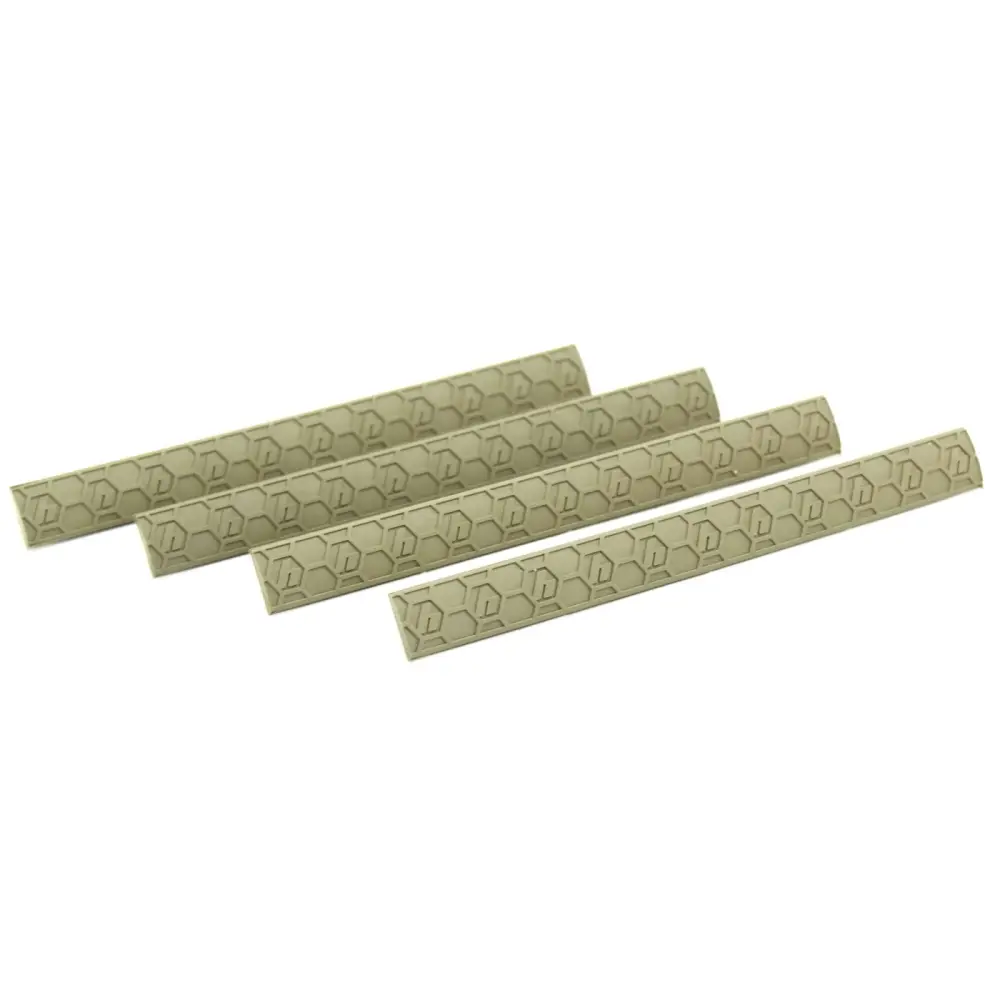 Protect yourself and your gear with Hexmag low-profile rail covers in a high-performance, non-slip design. Its patented pattern creates a non-slip surface and matches the look and feel of your Hexmag magazine and tactical grip. Sentry M-Lok rail covers use the patented Wedgelok technology to hold it securely to your handguard. When installing simply press each section firmly into each M-Lok slot. Once the Wedgelok is in place it will expand and lock in behind the hand-guard. Spans 4 M-Lok slots for convenient installation and can be cut down for shorter lengths to fit around optics or hand stops.