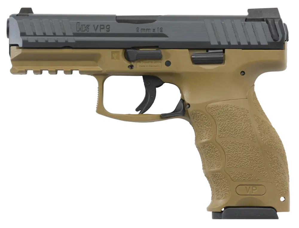 The VP Series is Heckler & Koch's first striker-fired HK since the P7 series pistols introduced in the 1980s. It is well-suited for civilian sport shooting, security, military, and law enforcement use. The VP Series integrates a striker firing system with an enhanced, HK "light pull" trigger. HK's cold hammer-forged barrel made from cannon grade steel ensures long service life, as does the polygonal bore profile which also provides a slight increase in muzzle velocity. The VP uses HK's ergonomic handgun grip design that includes three changeable backstraps and six side panels, accommodating all hand sizes. Molded finger grooves in the pistol's grip position an operator's hand for optimal shooting. An extended Picatinny MIL-STD-1913 rail molded into its polymer frame for mounting lights and accessories. All controls are completely ambidextrous. Slide releases are present on both sides of the frame, and the paddle-style magazine release can be easily activated by left- or right-handed shooters. A unique VP feature is HK's patented rear-mounted charging supports on each side of the slide provide better gripping leverage for racking the slide rearward. The machined steel slide is protected from corrosion and wear by HK's hostile environment finish and all metal components, including springs and pins have superior metallurgy. VP pistols use proven HK P30 steel magazines.