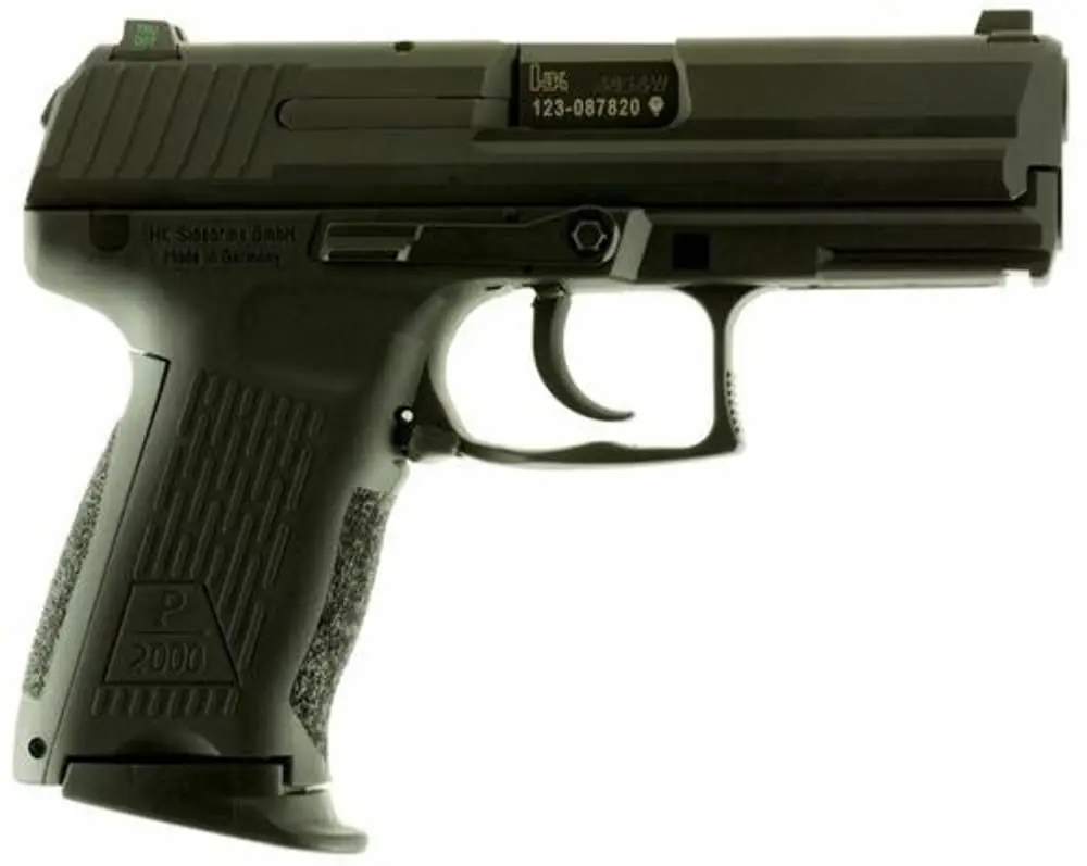 The P2000 incorporates features of the successful HK USP Compact pistol with the latest innovations of HK engineers.This pistol is available with a traditional double-action/single-action trigger mode and the LEM/CDA (Law Enforcement Modification, also known as Combat Defense Action) trigger system first introduced in 2001 on the USP Compact "LEM" model. The HK Law Enforcement Modification trigger system combines the advantages of a cocked striker component with a double-action hammer system. A set of simple-to-install modular grip panels allow the P2000 to be custom-fitted to any shooter's hand. An ambidextrous magazine release and dual slide release levers make handling the P2000 natural and easy for right and left-handed shooters alike. Industry standard mounting rails allow the widest variety of lights, laser aimers, and accessories to be added to the P2000 by sliding them onto the open rail system. It comes with three ten round magazines.