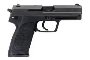 All USPs feature a fiber-reinforced polymer frame stiffened by stainless steel inserts at areas subject to stress and friction. HK pioneered this use of polymer materials in the production of handguns more than 30 years ago with the development of the VP70Z and P9S pistols. Using a modified Browning-type action with a special patented recoil reduction system, the USP recoil reduction system reduces recoil effects on pistol components and also lowers the recoil forces felt by the shooter. The USP recoil reduction system is insensitive to ammunition types and requires no special adjustment or maintenance. Variant 1 is double action/single action with SAFE position; control lever (manual safety/decocking lever) is mounted on left side of the frame. This model comes with 3-dot sights and two 10-round magazines. It is CA compliant.