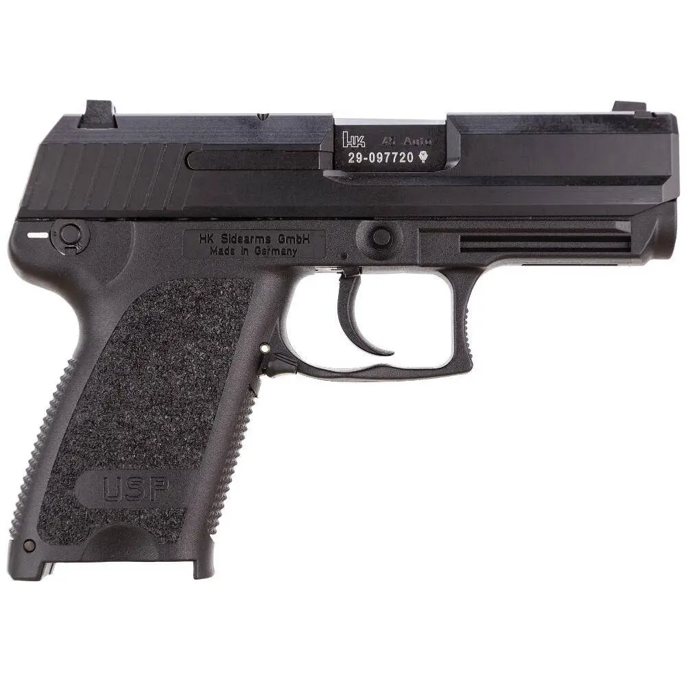 The HK USP Compacts are smaller and lighter than large frame USP's. The reduction in trigger reach and grip circumference increases concealability and enhances shooting ergonomics. The USP Compact uses a narrow, full-hand grip frame with a choice of interchangeable extended or flush-fitting magazine floorplates. This makes the pistol easy to shoot without sacrificing concealability. To reduce the length of the slide and barrel on the USP Compact, the mechanical recoil reduction system found on large frame USP's has been replaced by a specially designed flat compression spring contained in the captive recoil spring assembly by a polymer absorber bushing. Service life is still engineered to exceed 20,000 rounds.