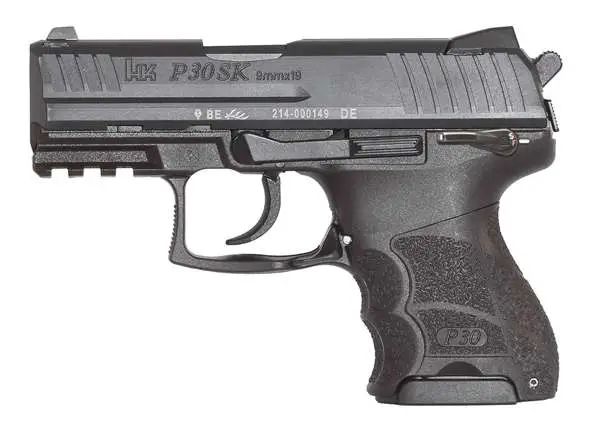 The subcompact model of the renowned P30 handgun, P30SK (SubKompact) series has all of the sought-after characteristics of the larger frame P30 and P30L pistols, but in a more concealable design. The completely adjustable P30 grip feature - consisting of interchangeable backstraps and lateral grip panels - is replicated in the ultra-compact grip frame of the P30SK. This allows the pistol to be easily modified to fit to any individual user. An abbreviated Picatinny rail molded into the front of the frame enables weapon lights, lasers, or other accessories to be easily mounted. Like all P30 pistols, the P30SK features an automatic hammer safety and firing pin safety. Ambidextrous controls include dual slide and magazine release levers. Despite the small size, P30SK subcompacts have excellent weight and balance making them naturally pointable, easy to control, and accurate to shoot. Like all P30 pistols, the P30SK features an automatic hammer safety and firing pin safety. Variant 3 uses a conventional double action/single action (DA/SA) trigger mode and has a frame-mounted rear decocking button. This V3 model also has an ambidextrous safety, is equipped with nights sights and includes three 10-round magazines.