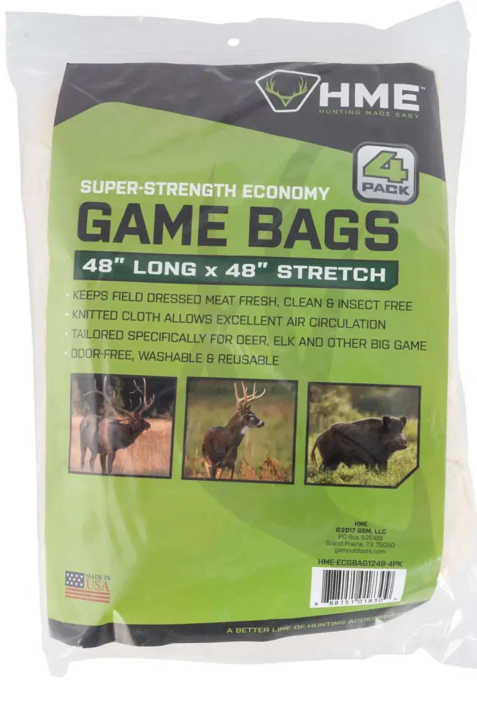 Heavy duty game bags keep field dressed meat fresh and insect free. The bags are odor-free, washable, and reusable.