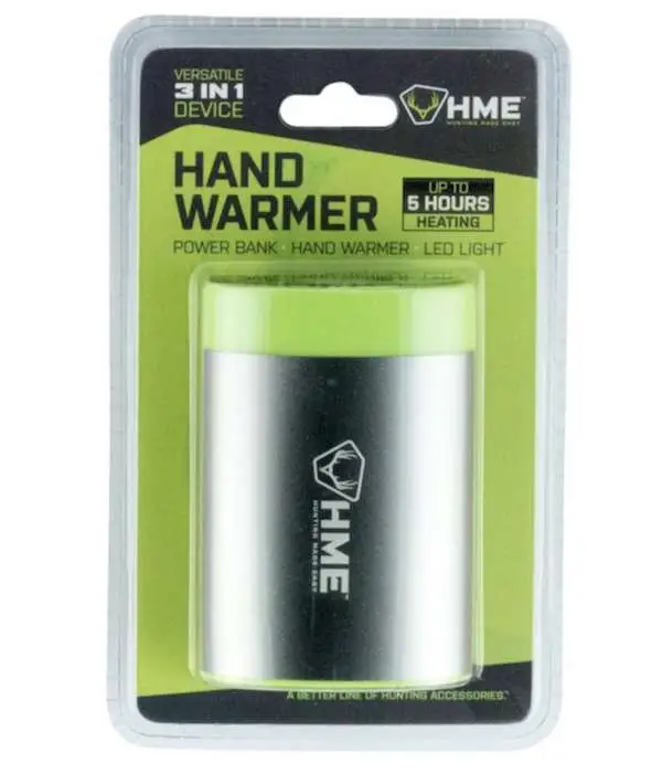 SME's Rechargeable Hand Warmer and Flashlight features dual temperature settings; high 118.4 F, low 39.2 F, built-in led light and a rechargeable 4400mAh li-ion battery. It has USB output to charge portable devices and provides short circuit, overcharge and over discharge protection. The led light features a blinker mode and charge time is three hours. Included is a USB charging cable.