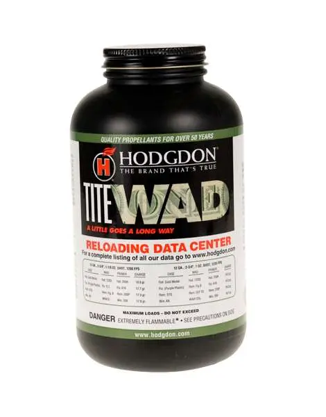 Through advanced technology, Hodgdon Powder Co. has produced a superior flattened spherical shotgun powder. Unlike spherical propellants in the past, Titewad features low charge weights, mild muzzle report, minimum recoil and reduced residue for optimum ballistic performance. This outstanding propellant designed for 12 gauge only, meters superbly and is ideal for 7/8, 1 and 1 1/8 ounce loads.