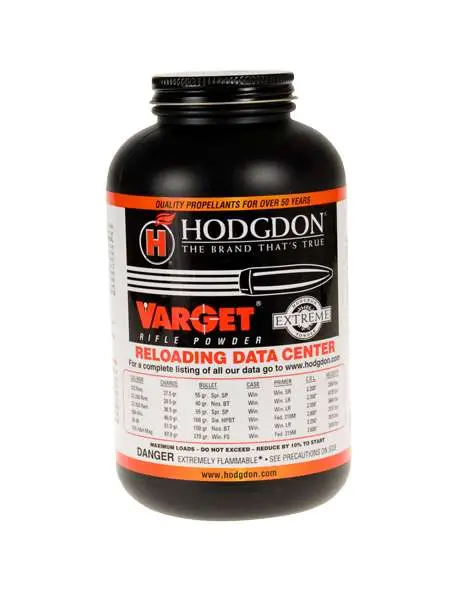 The first of Hodgdon's revolutionary Extreme Extruded Powders, Varget features small extruded grains for uniform metering, insensitivity to hot/cold temperatures and higher energy for improved velocities over other powders in its burning speed class. Easy ignition and clean burning characterize other features that translate into superb accuracy, higher scores and more clean, one shot kills. The perfect powder for competitive Match shooting 223 Remington and heavy bullets, Varget also offers outstanding performance and velocity in other popular cartridges such as 22-250 Remington, 308 Winchester, 30-06, 375 H&H and many more.