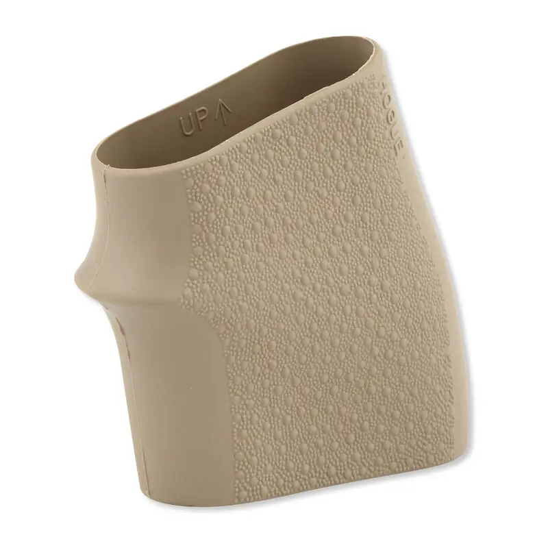 The HandAll Grip Sleeve are scientifically designed and patented with a unique shape that hugs the contours of your firearm giving them the tightest and most secure fit possible. Features include: proportioned finger grooves, cobblestone texture, ambidextrous palm swells. HandAll grip sleeves are easily installed and provide years of dependable service. This Jr. model has a FDE finish and is compatible with most 22, 25, 38 pistols.