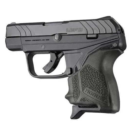 The HandAll Grip Sleeve are scientifically designed and patented with a unique shape that hugs the contours of your firearm giving them the tightest and most secure fit possible. Features include: proportioned finger grooves, cobblestone texture, ambidextrous palm swells. HandAll grip sleeves are easily installed and provide years of dependable service. This Beavertail model has a black finish and is compatible with Ruger LCP II.