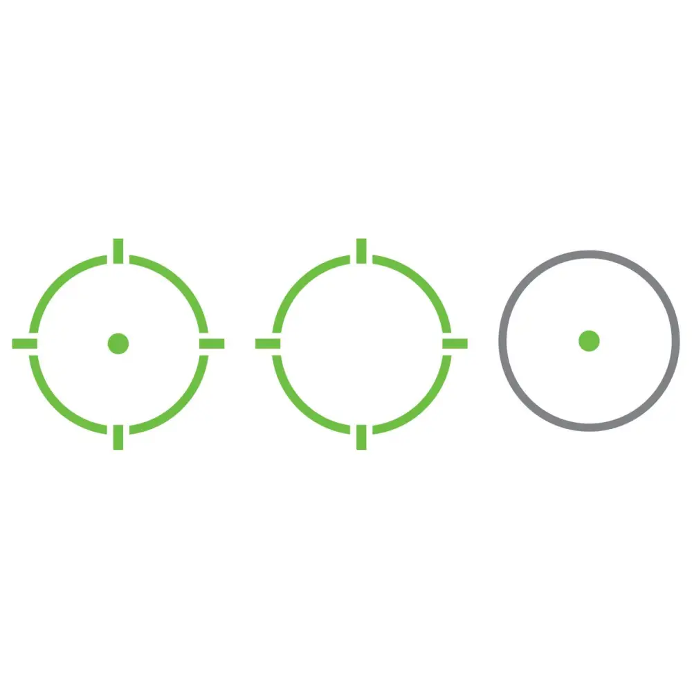 The HE510C-GR Elite is equipped with a highly efficient green reticle with an open frame for a wide sight picture. The open lens 32 mm x 24 mm are protected by a titanium-alloyed hood. The multi-reticle system features three reticle choices; a 65 MOA circle with 2 MOA dot, a 2 MOA dot only or a 65 MOA ring only all at the push of a button. The HS510C Elite is powered by solar cell and a one CR2032 battery (included). The HE510C Elite features a parallax free optical design, with unlimited eye relief, shake awake technology and has a quick release mount.