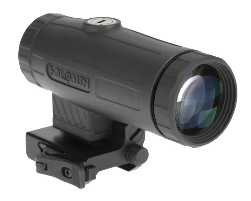 Holosun is proud to introduce the best magnifier value on the market today. The HM3X line of magnifiers will allow the operator to seamlessly transition from unmagnified to 3X magnification. The new Holosun HM3X features an adjustable diopter to dial in the desired focus, extremely clear glass, and very generous eye relief. Mounting options include an integrated QD mount with an optional spacer for Absolute Co-witness and Lower Co-witness. Holosuns HM3X comes in a durable Aluminum housing.