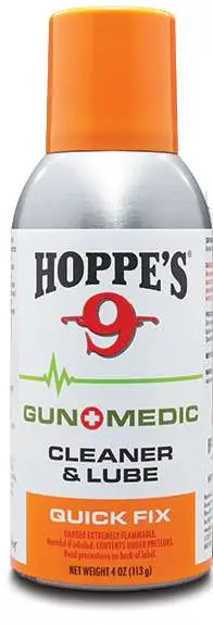 The unrivaled Gun Medic "All-in-One" formula cleans the actions of firearms and leaves behind a thin layer of high performance lubrication, protecting against the most punishing corrosion. Great for a quick clean when you don't have time to deep clean, Gun Medic Quick Fix cleanses and lubricates in one step. The cleanser evaporates in 60 seconds, and leaves an extremely thin layer of lube. The lubricant utilizes the same technology used in jet propulsion engines, and has a bio-based formula that is cold/heat resistant from -65 degrees F to 500 degrees F.