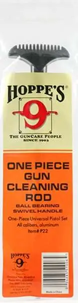 All Hoppe's Gun Cleaning Rods have a ball bearing swivel handle to follow the bore's rifling. This rod fits all pistol caliber firearms and has a knob with slotted ends.