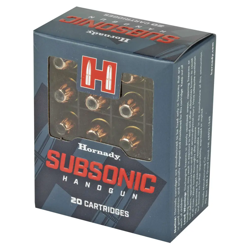 Subsonic Handgun utilizes tried-and-true XTP bullets that expand reliably at subsonic velocities. Long grooves in its gilding metal jacket combine with the bullet's flat profile and the patented Flex Tip insert within its hollowpoint cavity to help it expand reliably at low velocities.