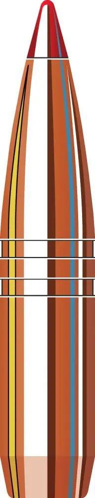Hornady's hard-hitting and deep-penetrating, GMX bullet combines monolithic construction with pioneering ballistic design to meet the need for a premium, non-traditional bullet. Featuring a long, sleek profile with cannelures, the design reduces overall bearing surface and drag, while achieving some of the highest ballistic coefficients from monolithic, non-traditional bullets. It utilizes a tough mono-metal copper alloy which has been proven to shoot cleaner, foul less, and deliver consistent, while the hard polymer tip drives into the hollow cavity at the front of the bullet, creating a mushroom-style projectile as it travels through the animal.