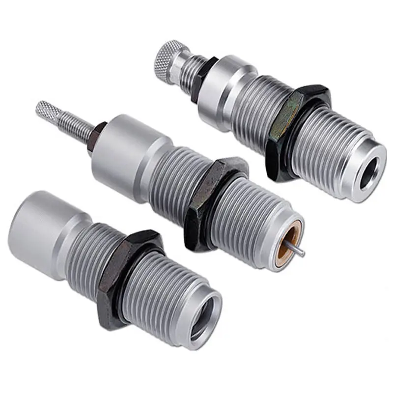 Perfect for the handloader looking to maximize the efficiency of their reloads, American Series die sets deliver excellent reloading performance at an unbeatable price. Its die bodies are precision reamed from premium steel that is hardened to exacting specifications. They are then polished to a smooth finish that will endure the rigors of countless reloading sessions. Included is a free shell holder, sizing die, select pistol dies basic reloadind data, and two extra decappong pins.