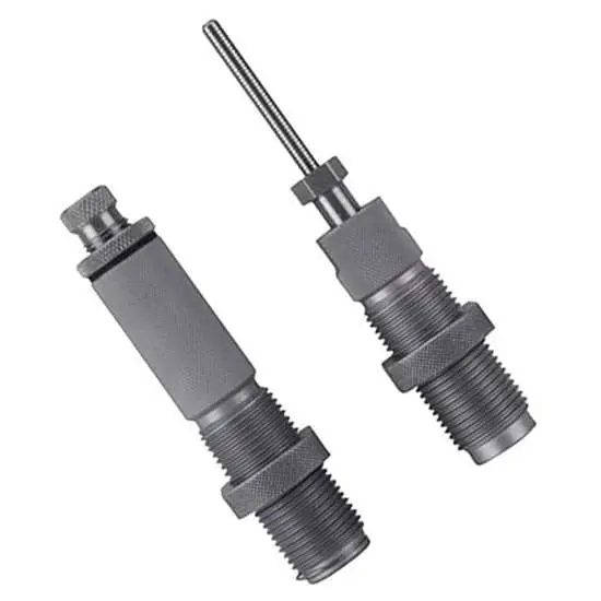 Hornady's custom grade dies provide a lifetime of reloading. They're so well crafted that they're guaranteed never to break or wear out from normal use and now they're better than ever! The spindle design features a series of light threads out on the spindle and spindle colet. This design eliminates spindle slippage and takes the knuckle busting out of tightening the spindle lock while making spindle adjustments a snap.