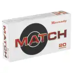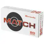 Hornady's Match ammunition features extremely tight tolerances and strict quality control for superior lot-to-lot consistency. Cases are carefully selected based on wall thickness uniformity, internal capacity, case weight and consistent wall concentrically, while the powder is matched carefully to each specific load for optimal pressure, velocity and consistent accuracy.