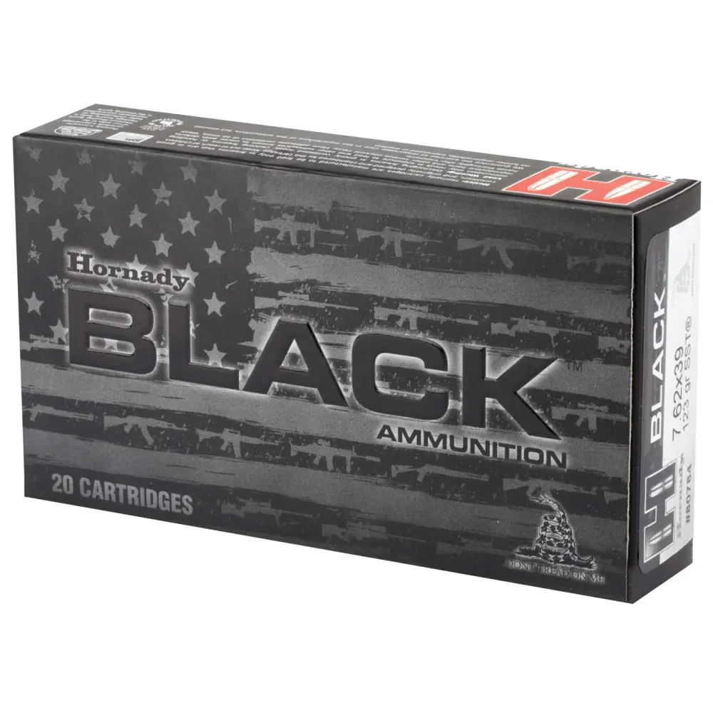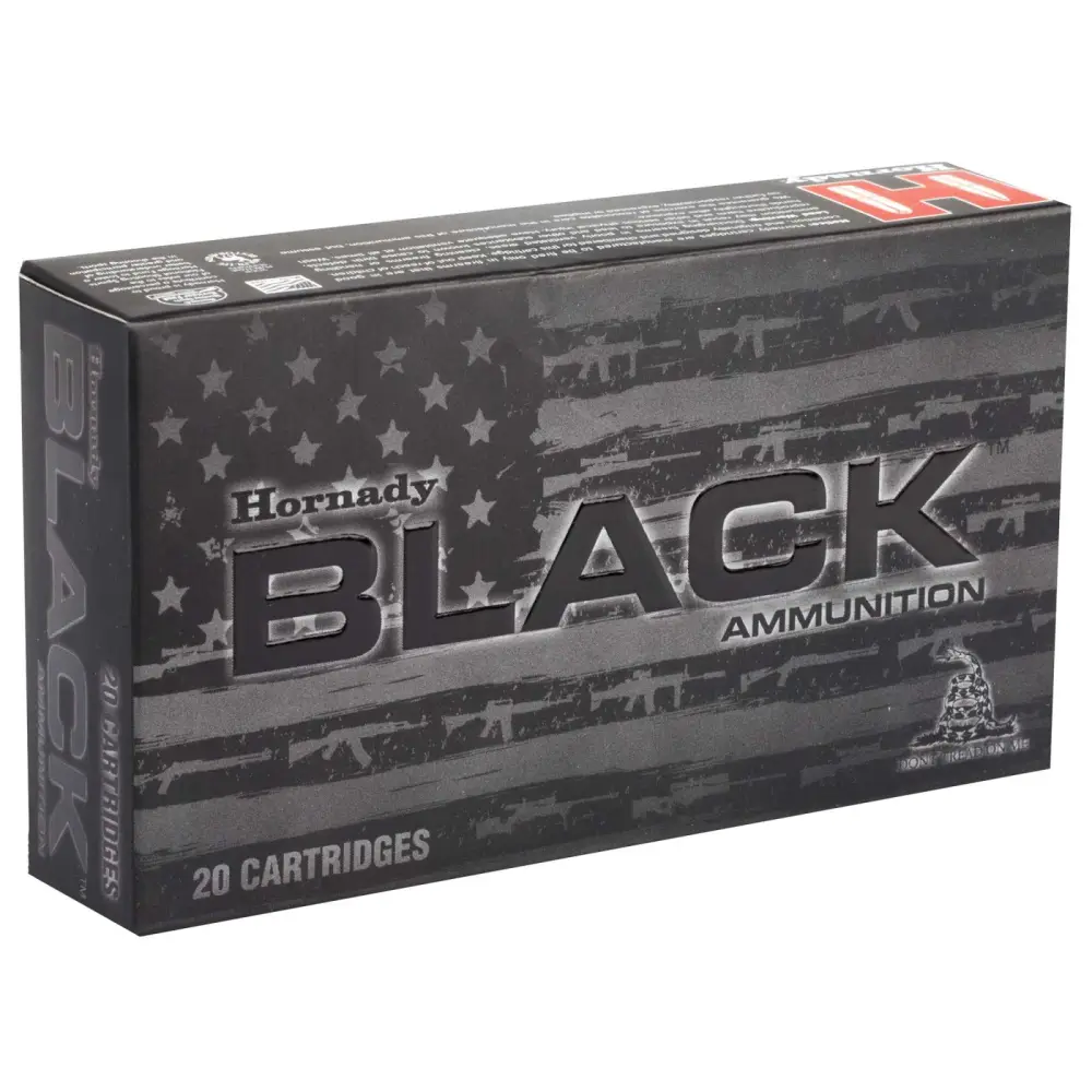Hornady Black ammunition features versatile loads optimized for excellent performance from America's favorite guns. Loaded with legendary Hornady bullets, Hornady Black ammunition is designed to fit, feed and function in a variety of platforms. Direct impingement, gas piston, suppressed, unsuppressed, inertia, bolt, pump, supersonic, subsonic, rifle, mid-length, carbine or pistol Hornady Black ammunition delivers superior performance for a variety of applications.