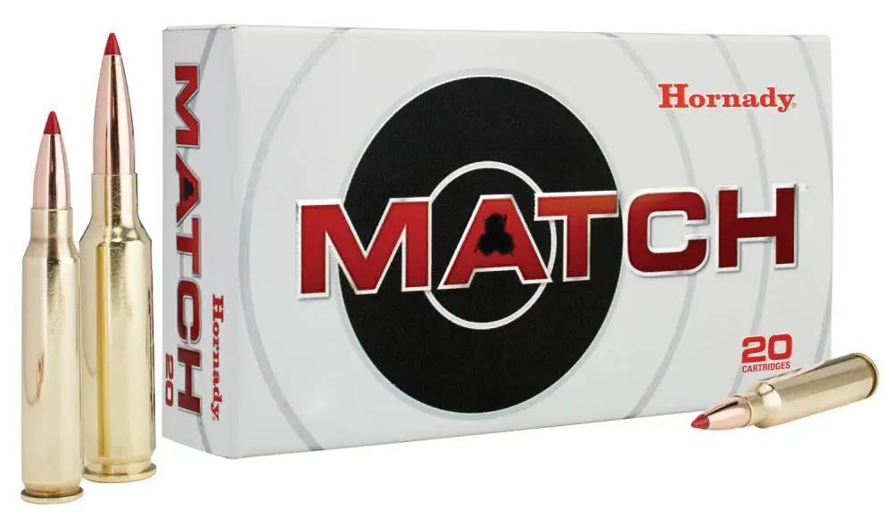Hornady's Match ammunition features extremely tight tolerances and strict quality control for superior lot-to-lot consistency. Cases are carefully selected based on wall thickness uniformity, internal capacity, case weight and consistent wall concentrically, while the powder is matched carefully to each specific load for optimal pressure, velocity and consistent accuracy.