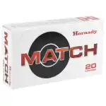 Hornady's Match ammunition features extremely tight tolerances and strict quality control for superior lot-to-lot consistency. Cases are carefully selected based on wall thickness uniformity, internal capacity, case weight and consistent wall concentrically, while the powder is matched carefully to each specific load for optimal pressure, velocity and consistent accuracy.